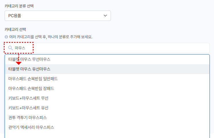 ② 카테고리 선택해요. 카테고리 검색 시 유사 카테고리가 노출되고, 이 중 원하는 카테고리를 선택할 수 있어요.