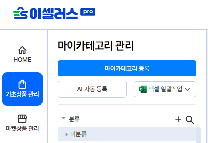 마이카테고리 > 엑셀일괄작업 > 엑셀 일괄등록 > 마켓카테고리 다운로드