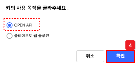 ③ [OPEN API] 선택 > 확인 선택해요.