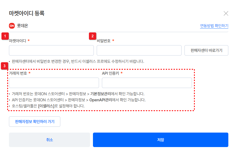 1) 롯데ON API 및 부가정보 설정 방법