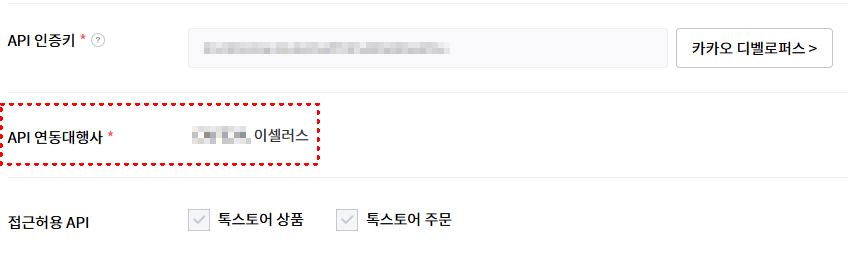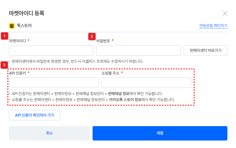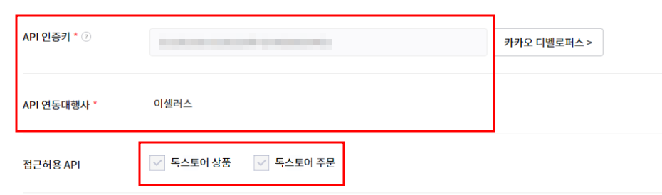 톡스토어 판매자 센터에서 [API 인증키] 발급을 먼저 진행해야 해요.