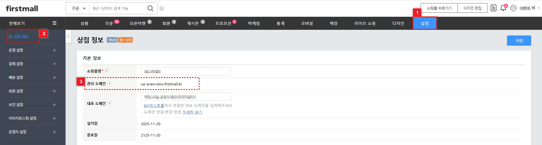 1) 퍼스트몰 관리 도메인 확인 방법