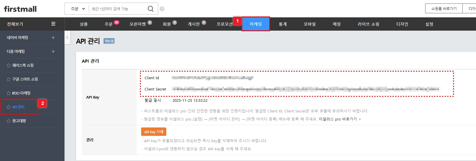 2) 퍼스트몰 API 설정 방법
