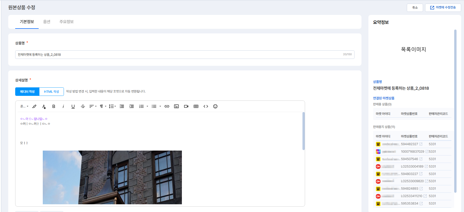원본상품이 수정되며, 연결된 모든 [마켓상품]도 같이 수정돼요!