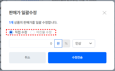 직접 수정 : 판매가를 입력하여 직접 인상/인하 할 수 있어요.