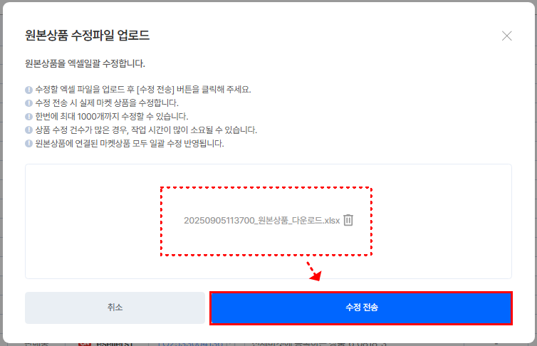 수정전송 시, 연동된 마켓상품도 같이 수정돼요!