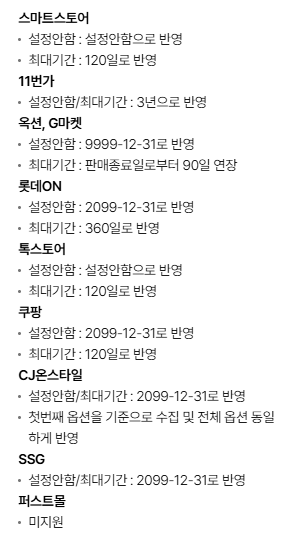 마켓별 설정안함 / 최대기간에 대한 기준이 달라요.