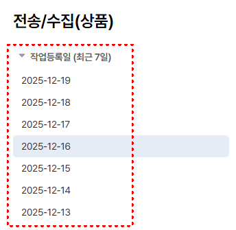 ① 작업등록일 기준 : 최근 7일 내 작업이력 확인