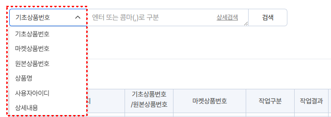 상품등록, 수집, 수정과 같은 상품과 관련된 작업이력을 조회할 수 있어요.