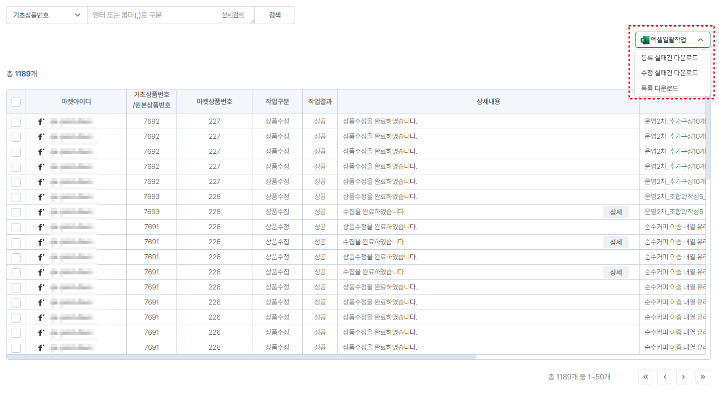등록/수정이 실패된 상품만 수정하는 방법은 아래 링크를 참고해주세요!