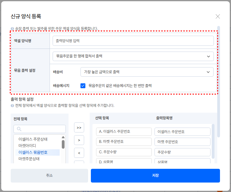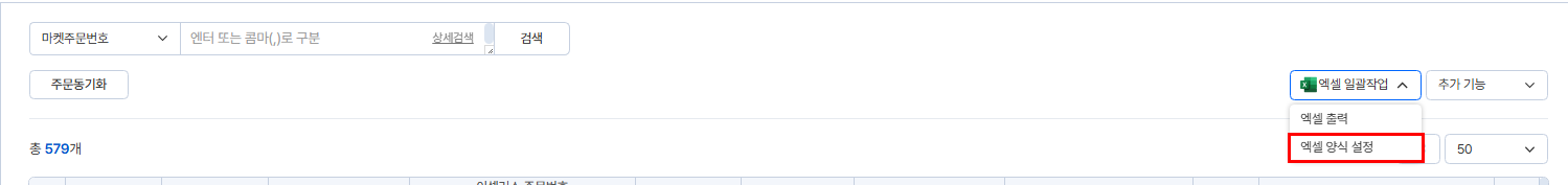 • 주문을 대량 처리할 때 엑셀로 출력할 수 있고, 특정양식을 지정할 수 있어요.