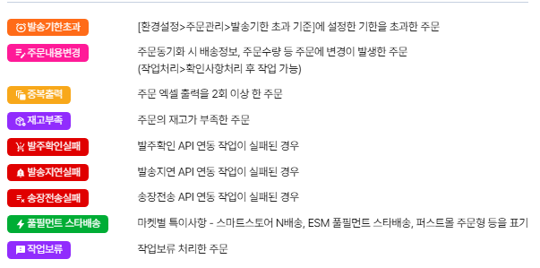 • 상품이 품절되었더나 어떤 사유로 인해 송장작업을 보류해야하는 경우에 작업보류를 설정할 수 있어요.