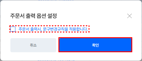 • 출력 시 문구변경규칙을 적용할 수 있게 체크가 가능해요.