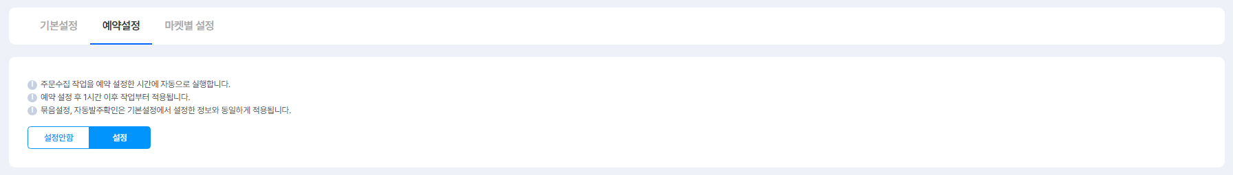 주문 수집 작업을 예약 설정한 시간에 자동으로 수집되도록 설정할 수 있어요.