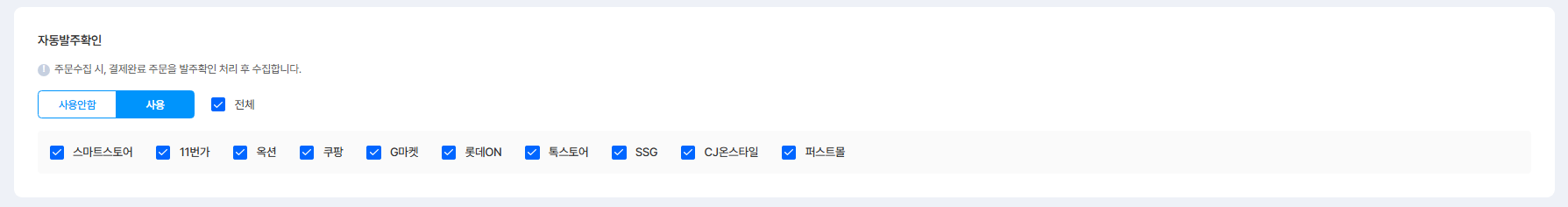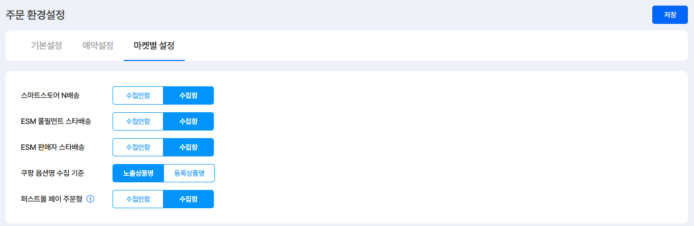 스마트스토어 N배송 수집 여부를 설정할 수 있어요.